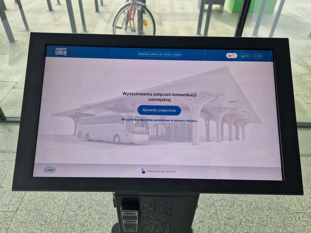 To urządzenie umożliwia pasażerom szybkie wyszukiwanie połączeń autobusowych regionalnych, krajowych i międzynarodowych realizowanych z oraz na Dworzec Lublin.