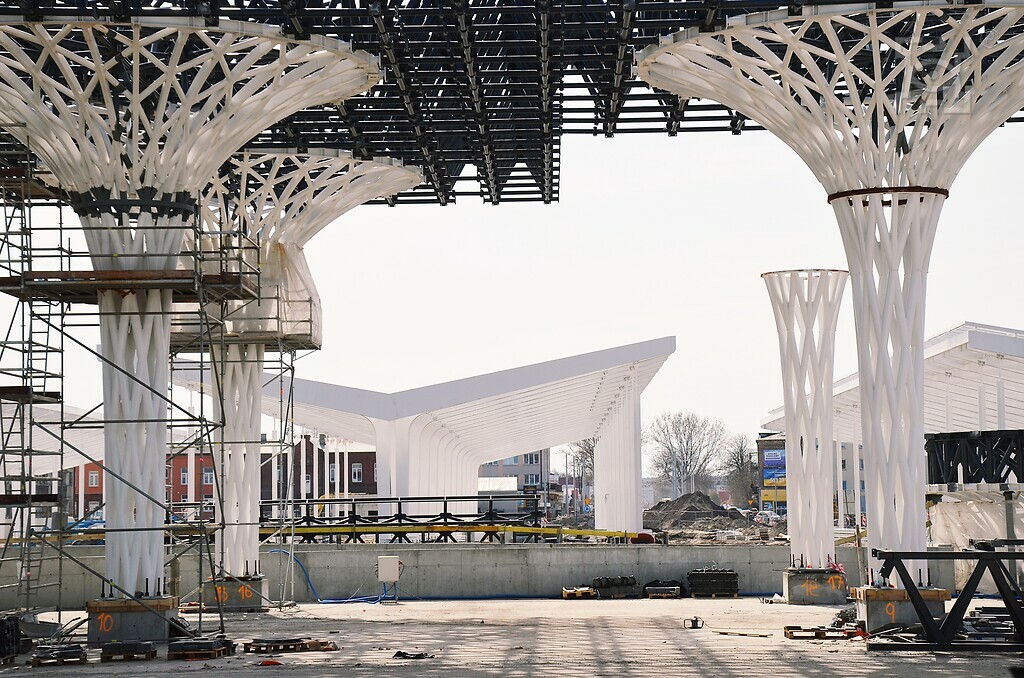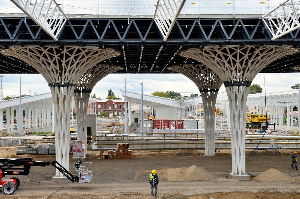 Gazeta Wyborcza – Budowa dworca metropolitalnego w Lublinie. Wszystkie charakterystyczne słupy już stoją na swoim miejscu