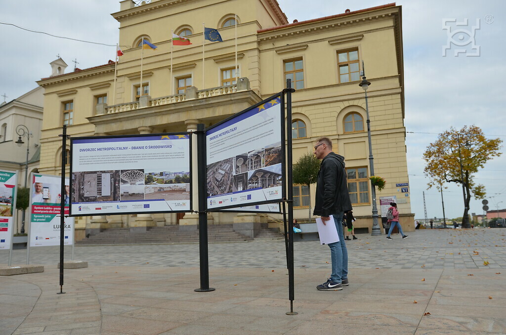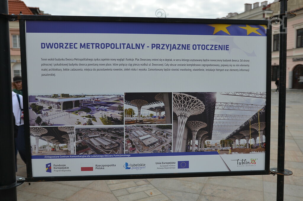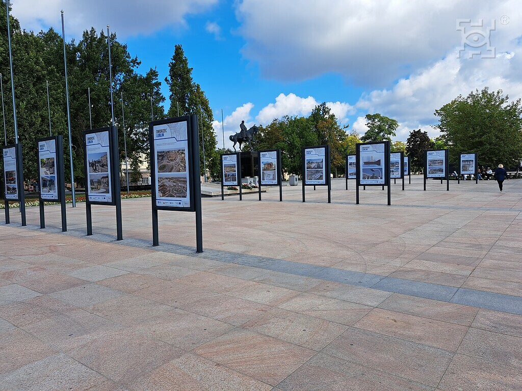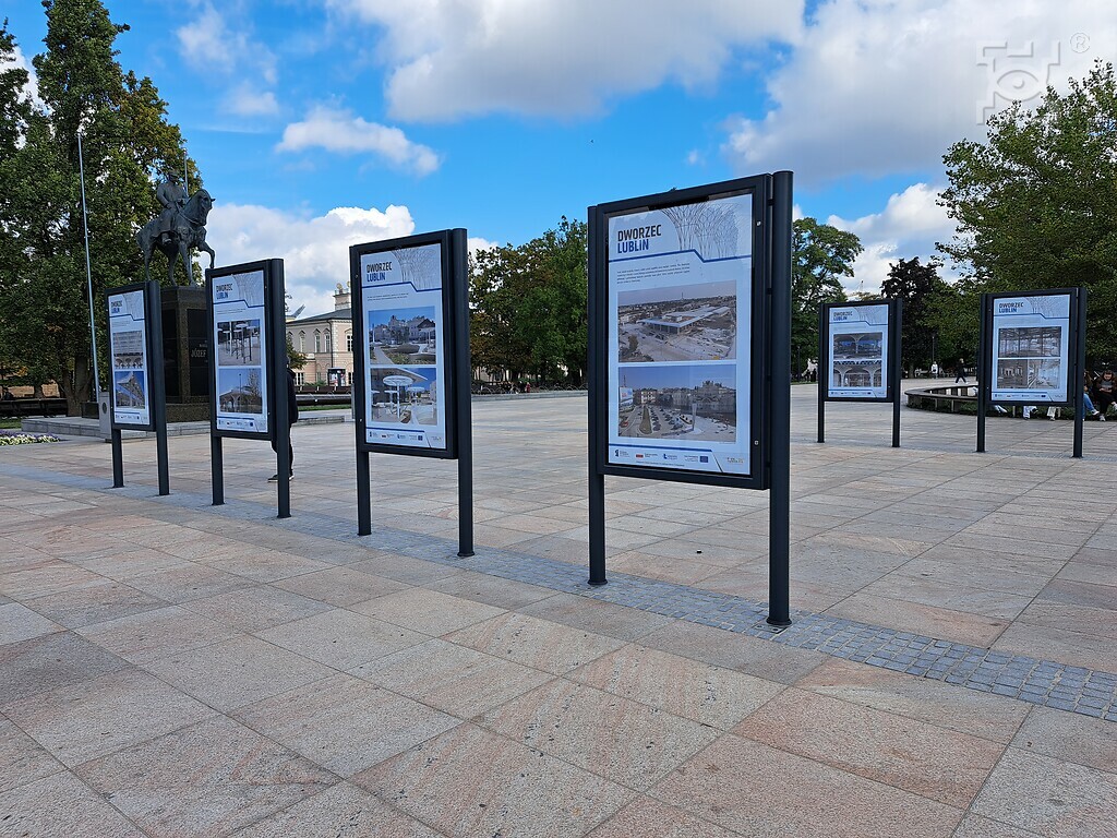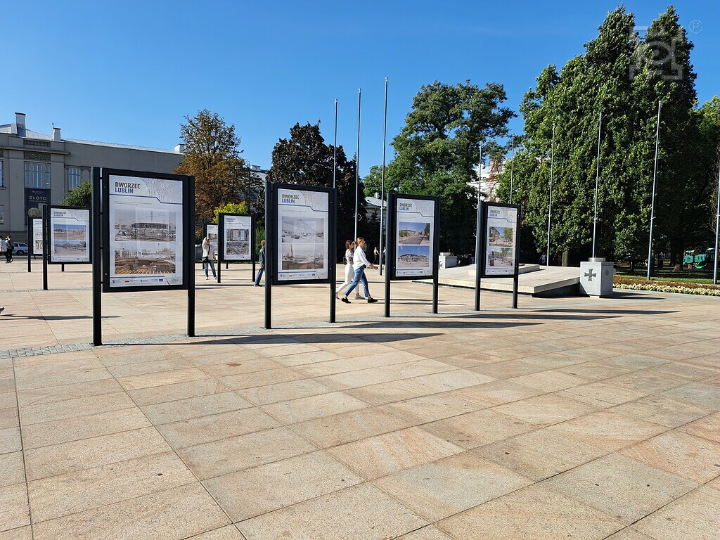 Postępy pracy przy realizacji projektu oraz prace nominowane do nagród w konkursie „Dworzec Lublin i Ja” ukazane były w czasie wystawy na pl. Litewskim w maju 2023 r.