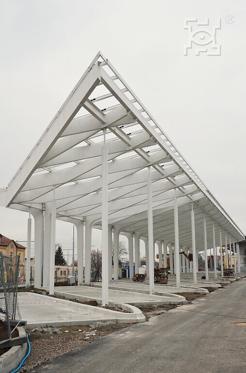 - budowa peronów odjazdowych komunikacji autobusowo-busowej i komunikacji miejskiej, jak również budowa wewnętrznych dróg dojazdowych, stanowisk postojowych, placów, chodników oraz zagospodarowanie zieleni;